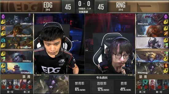决胜局,EDG拿出了维鲁斯和奥巴马两个ADC,而RNG则拿出了一个艾希和发条两个后期输出非常高的C位。